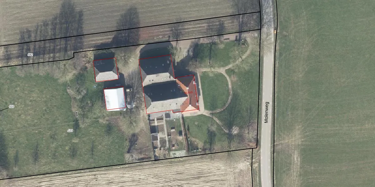 Het perceel waarop Molenweg 31 staat heeft een oppervlakte van 8870 m². Dit is een zeer groot perceel. De perceeloppervlakte wordt geregistreerd door het Kadaster. Gedetailleerde informatie over de maten van dit perceel kunt u vinden in het rapport Kadastrale kaart met maatvoering van Molenweg 31.