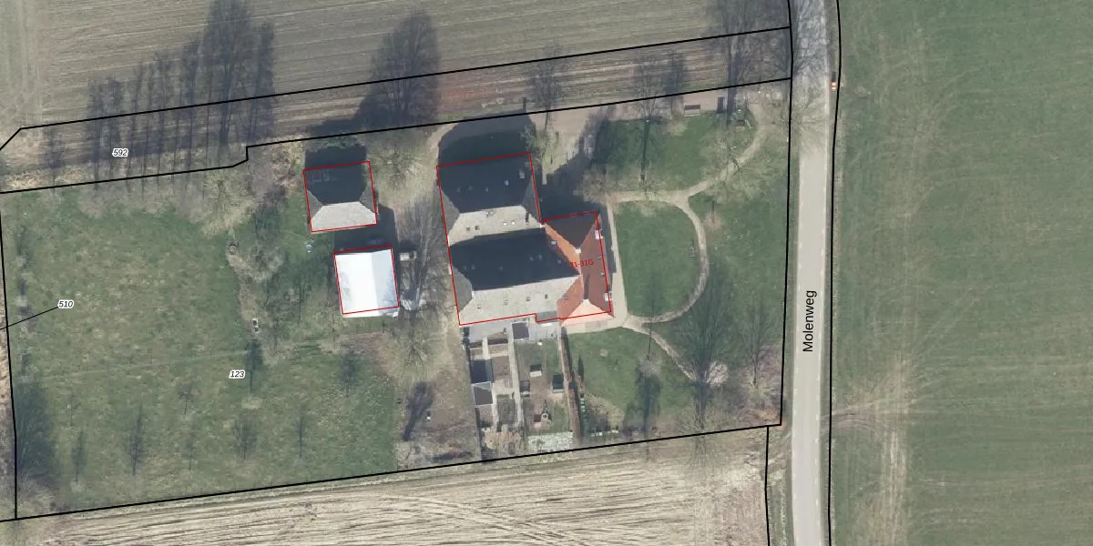 Het perceel waarop Molenweg 31-C staat heeft een oppervlakte van 8870 m². Dit is een zeer groot perceel. De perceeloppervlakte wordt geregistreerd door het Kadaster. Gedetailleerde informatie over de maten van dit perceel kunt u vinden in het rapport Kadastrale kaart met maatvoering van Molenweg 31-C.