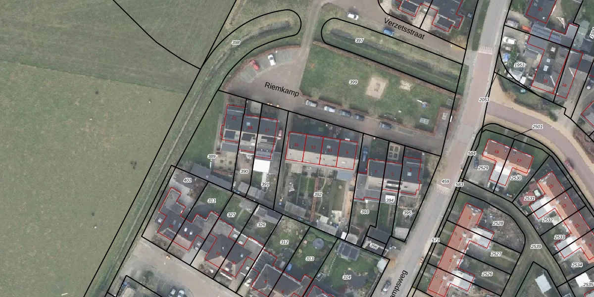 Riemkamp 15 is gelegen op kadastraal perceel VOO00M392. Deze kadastrale aanduiding is uniek en wordt gebruikt door het Kadaster om eigendomsrechten en andere zakelijke rechten vast te leggen. Het perceel maakt onderdeel uit van de kadastrale gemeente Voorst.