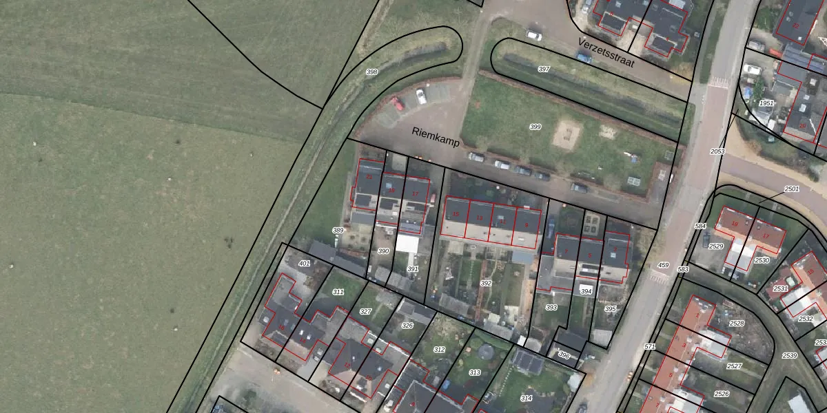 Het perceel waarop Riemkamp 17 staat heeft een oppervlakte van 300 m². Dit is een groot perceel. De perceeloppervlakte wordt geregistreerd door het Kadaster. Gedetailleerde informatie over de maten van dit perceel kunt u vinden in het rapport Kadastrale kaart met maatvoering van Riemkamp 17.