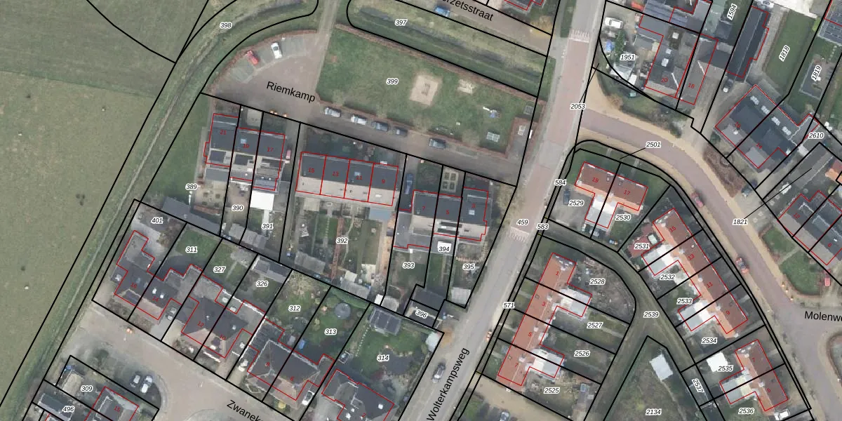 Het perceel waarop Riemkamp 7 staat heeft een oppervlakte van 310 m². Dit is een groot perceel. De perceeloppervlakte wordt geregistreerd door het Kadaster. Gedetailleerde informatie over de maten van dit perceel kunt u vinden in het rapport Kadastrale kaart met maatvoering van Riemkamp 7.