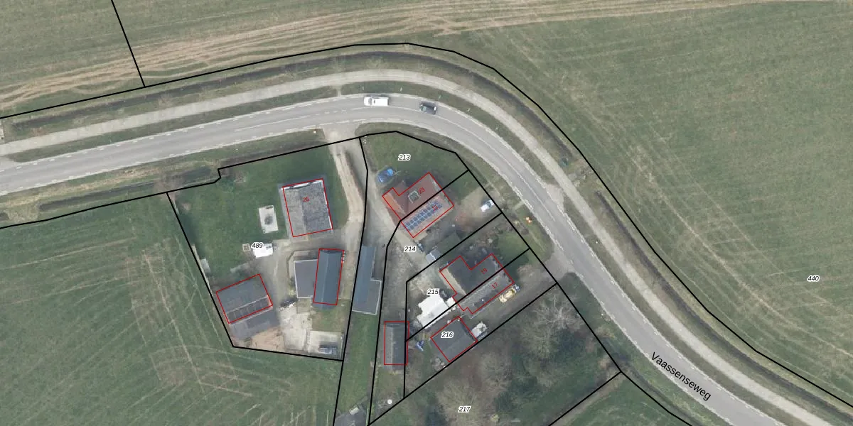 Vaassenseweg 21 is gelegen op kadastraal perceel VOO00M214. Deze kadastrale aanduiding is uniek en wordt gebruikt door het Kadaster om eigendomsrechten en andere zakelijke rechten vast te leggen. Het perceel maakt onderdeel uit van de kadastrale gemeente Voorst.