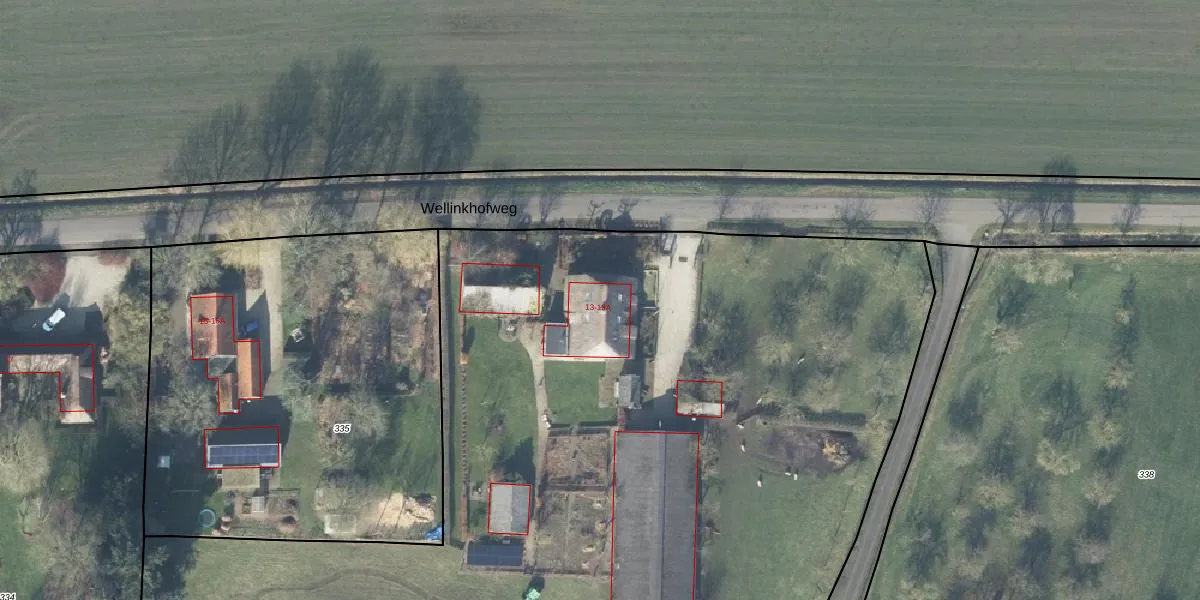Wellinkhofweg 13 is gelegen op kadastraal perceel VOO00O336. Deze kadastrale aanduiding is uniek en wordt gebruikt door het Kadaster om eigendomsrechten en andere zakelijke rechten vast te leggen. Het perceel maakt onderdeel uit van de kadastrale gemeente Voorst.