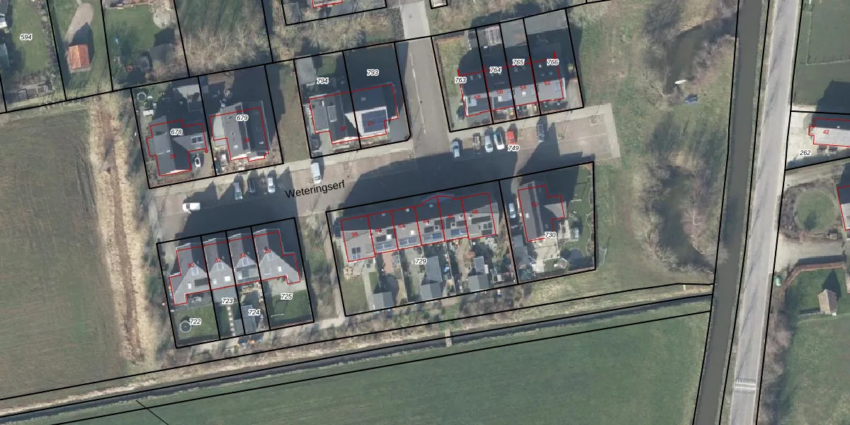 Weteringserf 44 is gelegen op kadastraal perceel NBK02I729. Deze kadastrale aanduiding is uniek en wordt gebruikt door het Kadaster om eigendomsrechten en andere zakelijke rechten vast te leggen. Het perceel maakt onderdeel uit van de kadastrale gemeente Nijbroek.