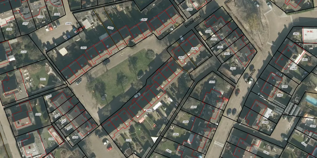 Het perceel waarop Bosbeemd 26 staat heeft een oppervlakte van 1748 m². Dit is een zeer groot perceel. De perceeloppervlakte wordt geregistreerd door het Kadaster. Gedetailleerde informatie over de maten van dit perceel kunt u vinden in het rapport Kadastrale kaart met maatvoering van Bosbeemd 26.