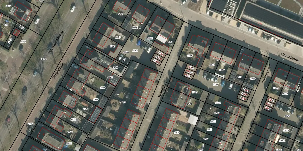 Het perceel waarop Breeschot 2 staat heeft een oppervlakte van 1527 m². Dit is een zeer groot perceel. De perceeloppervlakte wordt geregistreerd door het Kadaster. Gedetailleerde informatie over de maten van dit perceel kunt u vinden in het rapport Kadastrale kaart met maatvoering van Breeschot 2.