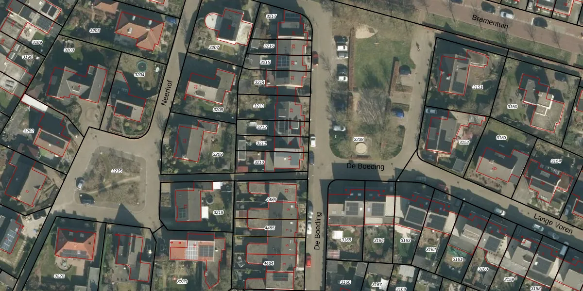 Het perceel waarop De Boeding 15 staat heeft een oppervlakte van 135 m². Dit is een middelgroot perceel. De perceeloppervlakte wordt geregistreerd door het Kadaster. Gedetailleerde informatie over de maten van dit perceel kunt u vinden in het rapport Kadastrale kaart met maatvoering van De Boeding 15.