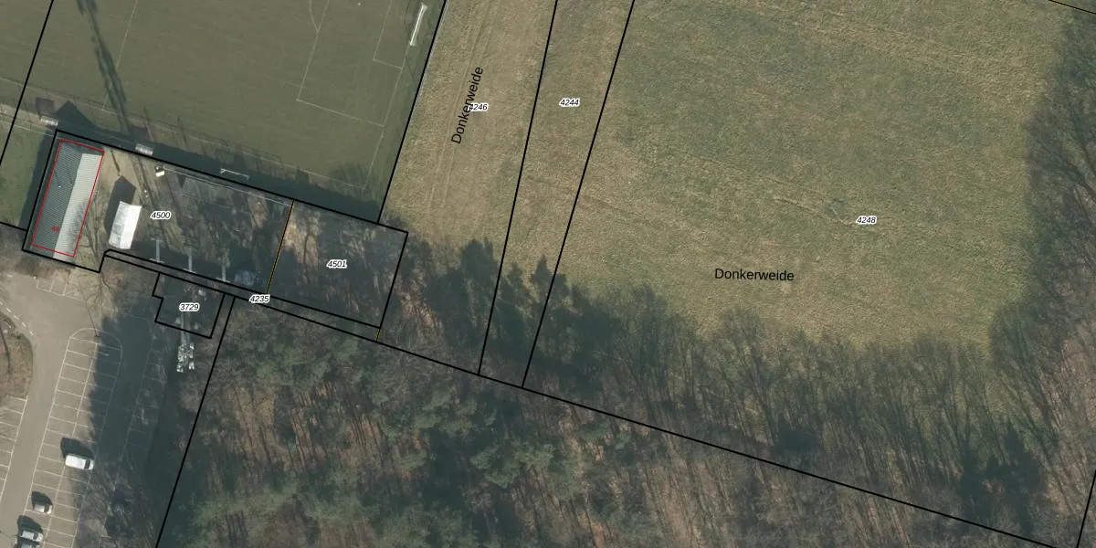 Donkerweide 28 is gelegen op kadastraal perceel TTR00B4244. Deze kadastrale aanduiding is uniek en wordt gebruikt door het Kadaster om eigendomsrechten en andere zakelijke rechten vast te leggen. Het perceel maakt onderdeel uit van de kadastrale gemeente Teteringen.