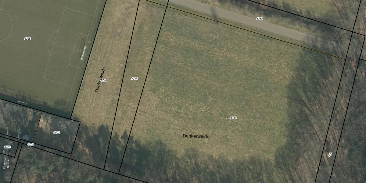 Het perceel waarop Donkerweide 47 staat heeft een oppervlakte van 9830 m². Dit is een zeer groot perceel. De perceeloppervlakte wordt geregistreerd door het Kadaster. Gedetailleerde informatie over de maten van dit perceel kunt u vinden in het rapport Kadastrale kaart met maatvoering van Donkerweide 47.