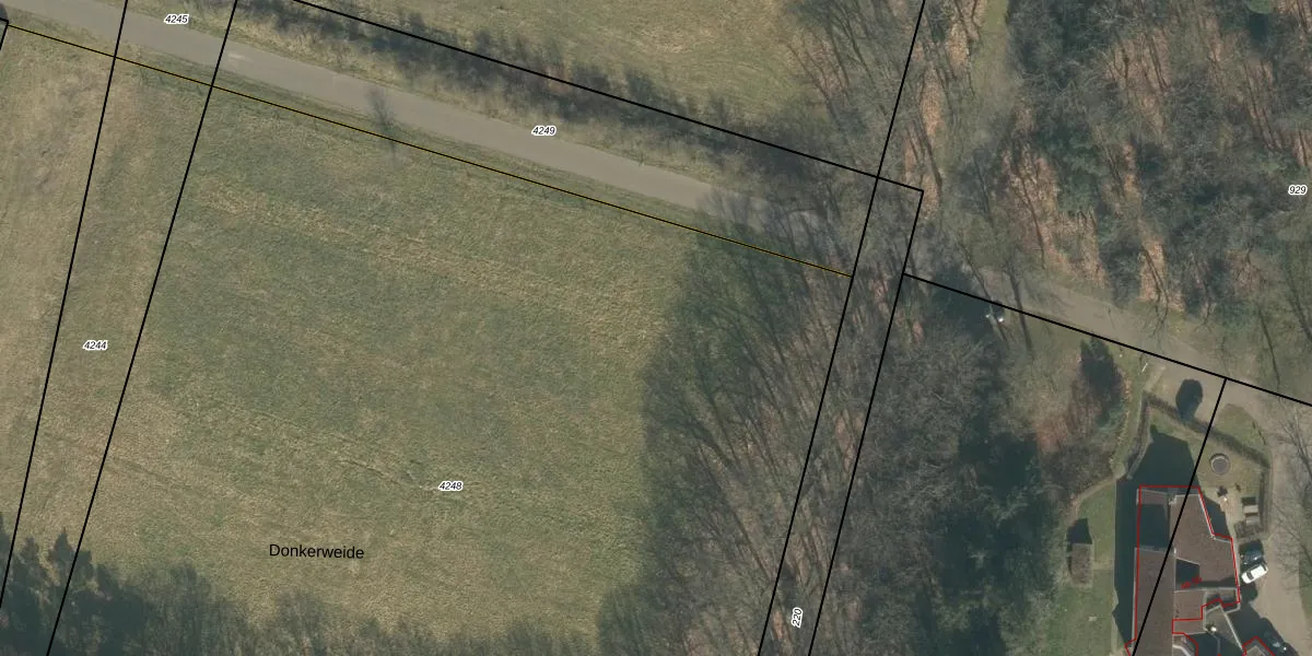 Het perceel waarop Donkerweide 88 staat heeft een oppervlakte van 9830 m². Dit is een zeer groot perceel. De perceeloppervlakte wordt geregistreerd door het Kadaster. Gedetailleerde informatie over de maten van dit perceel kunt u vinden in het rapport Kadastrale kaart met maatvoering van Donkerweide 88.