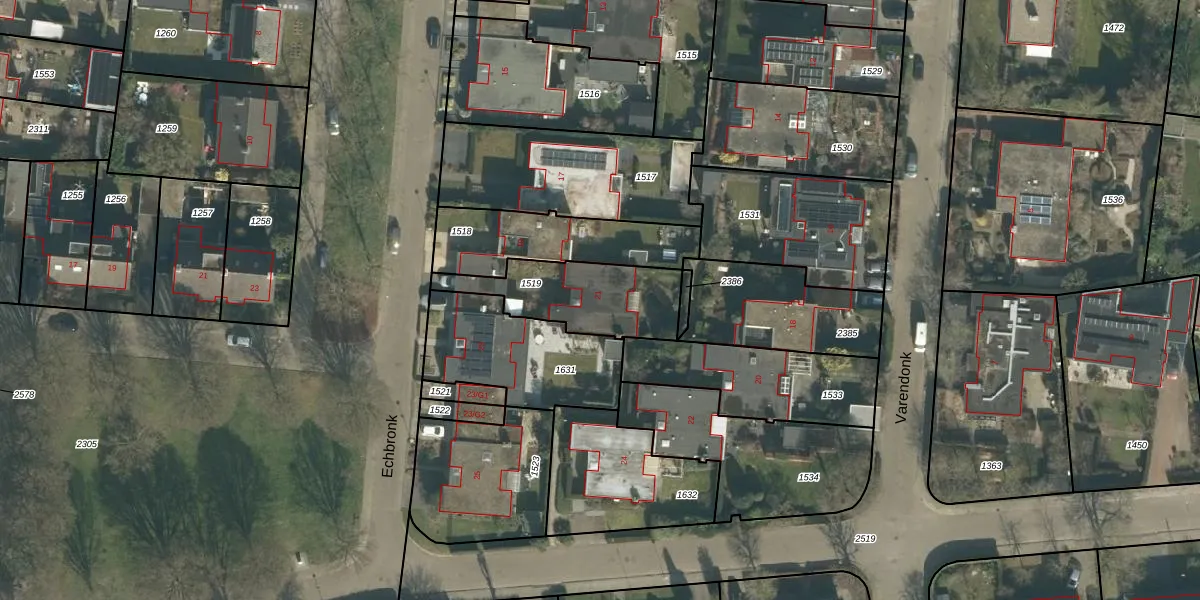 Het perceel waarop Echbronk 21 staat heeft een oppervlakte van 362 m². Dit is een groot perceel. De perceeloppervlakte wordt geregistreerd door het Kadaster. Gedetailleerde informatie over de maten van dit perceel kunt u vinden in het rapport Kadastrale kaart met maatvoering van Echbronk 21.