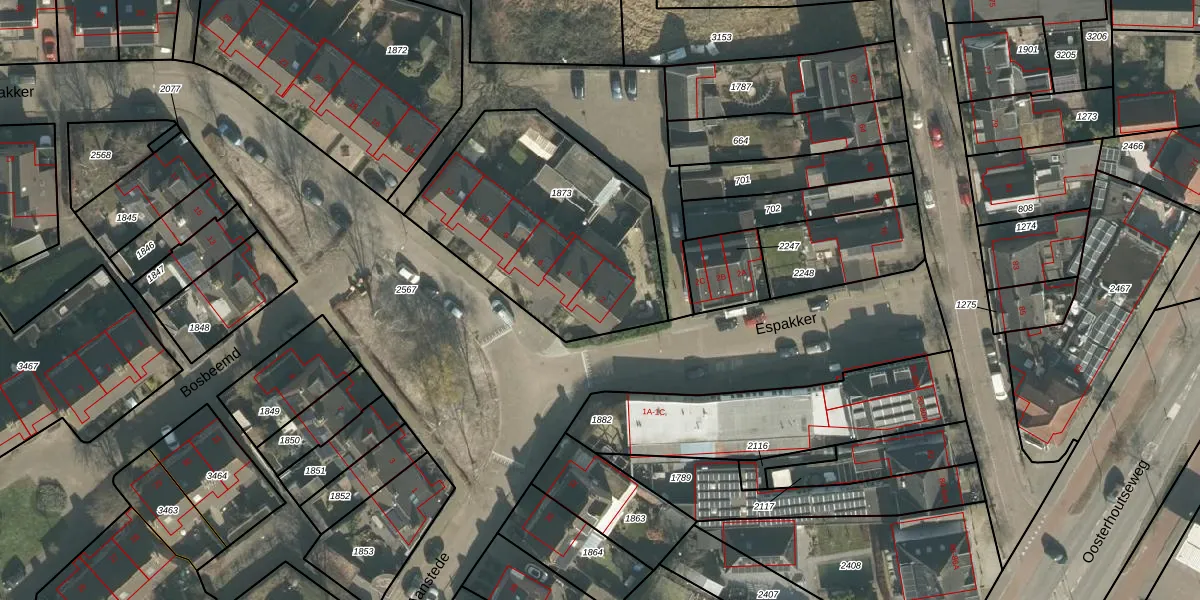 Het perceel waarop Espakker 2 staat heeft een oppervlakte van 1060 m². Dit is een zeer groot perceel. De perceeloppervlakte wordt geregistreerd door het Kadaster. Gedetailleerde informatie over de maten van dit perceel kunt u vinden in het rapport Kadastrale kaart met maatvoering van Espakker 2.