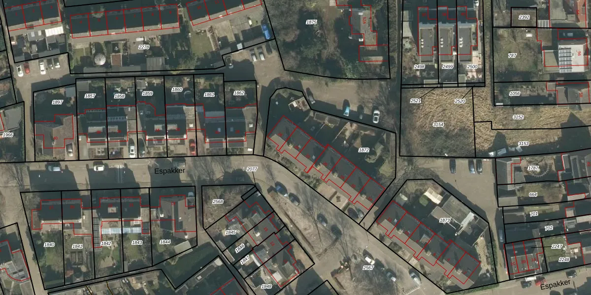 Het perceel waarop Espakker 24 staat heeft een oppervlakte van 1190 m². Dit is een zeer groot perceel. De perceeloppervlakte wordt geregistreerd door het Kadaster. Gedetailleerde informatie over de maten van dit perceel kunt u vinden in het rapport Kadastrale kaart met maatvoering van Espakker 24.