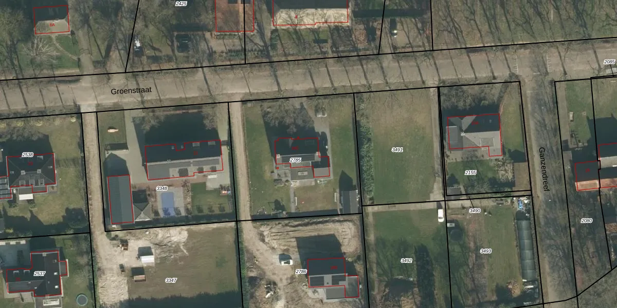 Het perceel waarop Groenstraat 19-C staat heeft een oppervlakte van 1595 m². Dit is een zeer groot perceel. De perceeloppervlakte wordt geregistreerd door het Kadaster. Gedetailleerde informatie over de maten van dit perceel kunt u vinden in het rapport Kadastrale kaart met maatvoering van Groenstraat 19-C.