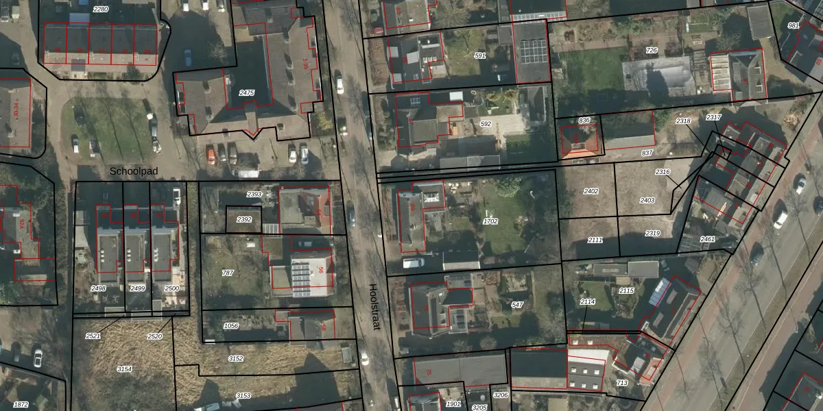Het perceel waarop Hoolstraat 69 staat heeft een oppervlakte van 970 m². Dit is een groot perceel. De perceeloppervlakte wordt geregistreerd door het Kadaster. Gedetailleerde informatie over de maten van dit perceel kunt u vinden in het rapport Kadastrale kaart met maatvoering van Hoolstraat 69.