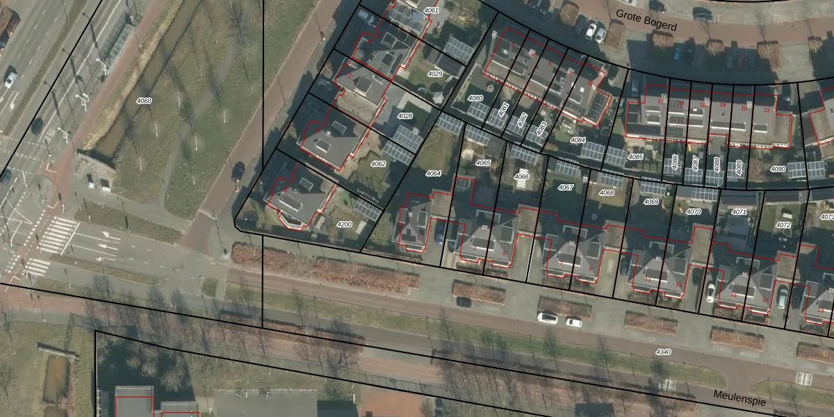 Het perceel waarop Meulenspie 1 staat heeft een oppervlakte van 469 m². Dit is een groot perceel. De perceeloppervlakte wordt geregistreerd door het Kadaster. Gedetailleerde informatie over de maten van dit perceel kunt u vinden in het rapport Kadastrale kaart met maatvoering van Meulenspie 1.