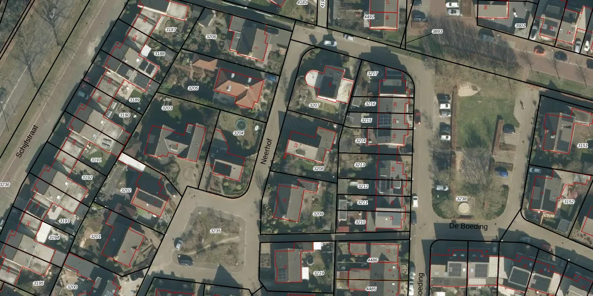 Het perceel waarop Neerhof 13 staat heeft een oppervlakte van 429 m². Dit is een groot perceel. De perceeloppervlakte wordt geregistreerd door het Kadaster. Gedetailleerde informatie over de maten van dit perceel kunt u vinden in het rapport Kadastrale kaart met maatvoering van Neerhof 13.