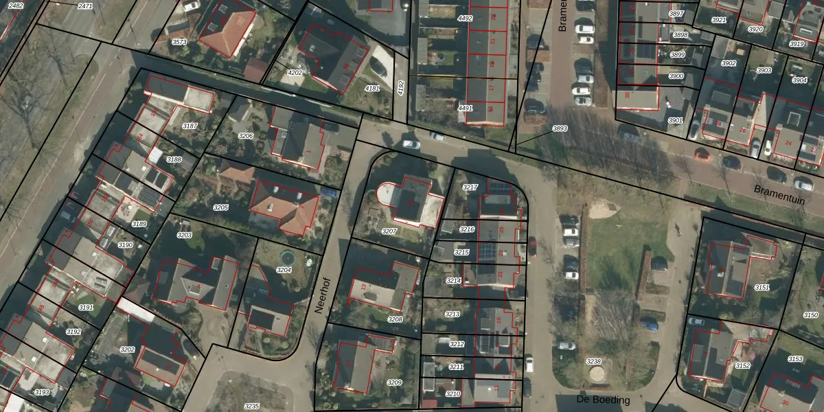 Het perceel waarop Neerhof 14 staat heeft een oppervlakte van 447 m². Dit is een groot perceel. De perceeloppervlakte wordt geregistreerd door het Kadaster. Gedetailleerde informatie over de maten van dit perceel kunt u vinden in het rapport Kadastrale kaart met maatvoering van Neerhof 14.