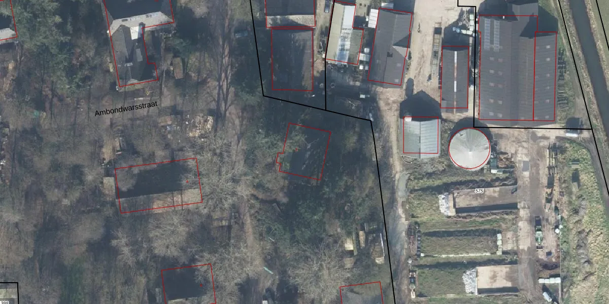 Het perceel waarop Ambonstraat 3 staat heeft een oppervlakte van 3,2 ha. Dit is een zeer groot perceel. De perceeloppervlakte wordt geregistreerd door het Kadaster. Gedetailleerde informatie over de maten van dit perceel kunt u vinden in het rapport Kadastrale kaart met maatvoering van Ambonstraat 3.