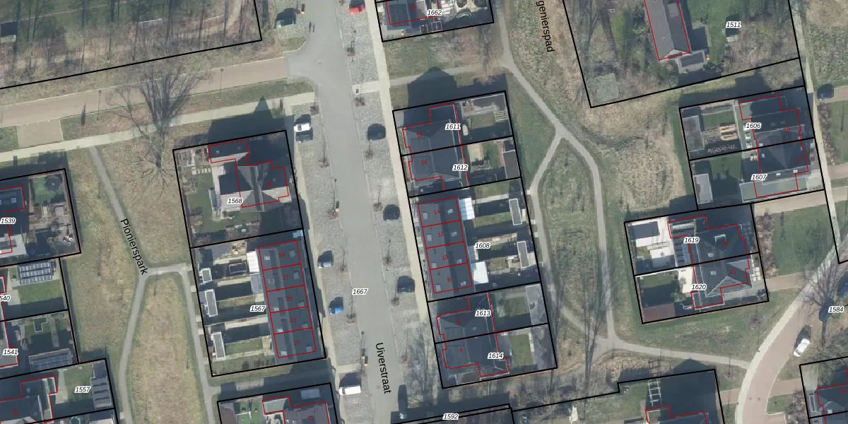 Uiverstraat 14 is gelegen op kadastraal perceel TLO00D1608. Deze kadastrale aanduiding is uniek en wordt gebruikt door het Kadaster om eigendomsrechten en andere zakelijke rechten vast te leggen. Het perceel maakt onderdeel uit van de kadastrale gemeente Twello.
