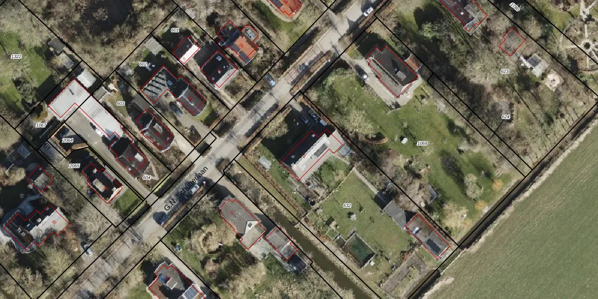 G.N. Schutterlaan 21 is gelegen op kadastraal perceel BOE00K632. Deze kadastrale aanduiding is uniek en wordt gebruikt door het Kadaster om eigendomsrechten en andere zakelijke rechten vast te leggen. Het perceel maakt onderdeel uit van de kadastrale gemeente ten Boer.