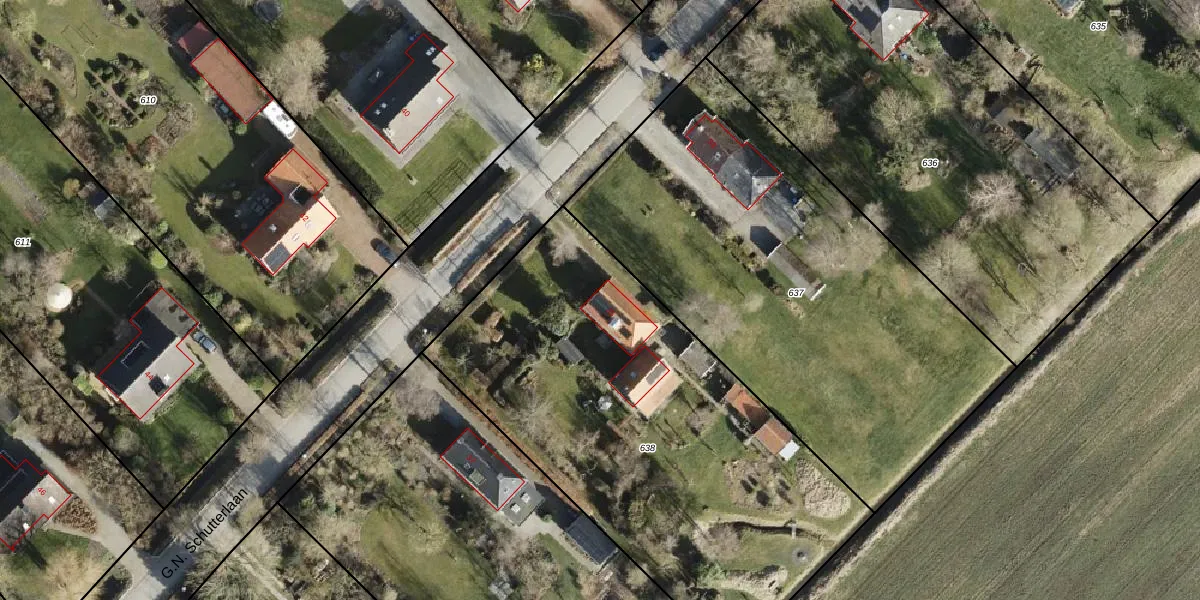 G.N. Schutterlaan 35 is gelegen op kadastraal perceel BOE00K638. Deze kadastrale aanduiding is uniek en wordt gebruikt door het Kadaster om eigendomsrechten en andere zakelijke rechten vast te leggen. Het perceel maakt onderdeel uit van de kadastrale gemeente ten Boer.