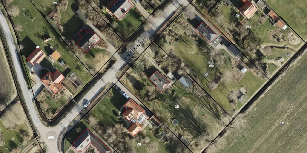 G.N. Schutterlaan 39 is gelegen op kadastraal perceel BOE00K640. Deze kadastrale aanduiding is uniek en wordt gebruikt door het Kadaster om eigendomsrechten en andere zakelijke rechten vast te leggen. Het perceel maakt onderdeel uit van de kadastrale gemeente ten Boer.