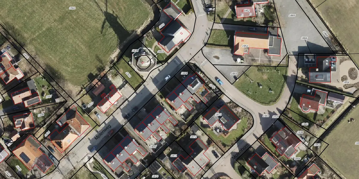 Molenweg 16 is gelegen op kadastraal perceel BOE00I1905. Deze kadastrale aanduiding is uniek en wordt gebruikt door het Kadaster om eigendomsrechten en andere zakelijke rechten vast te leggen. Het perceel maakt onderdeel uit van de kadastrale gemeente ten Boer.