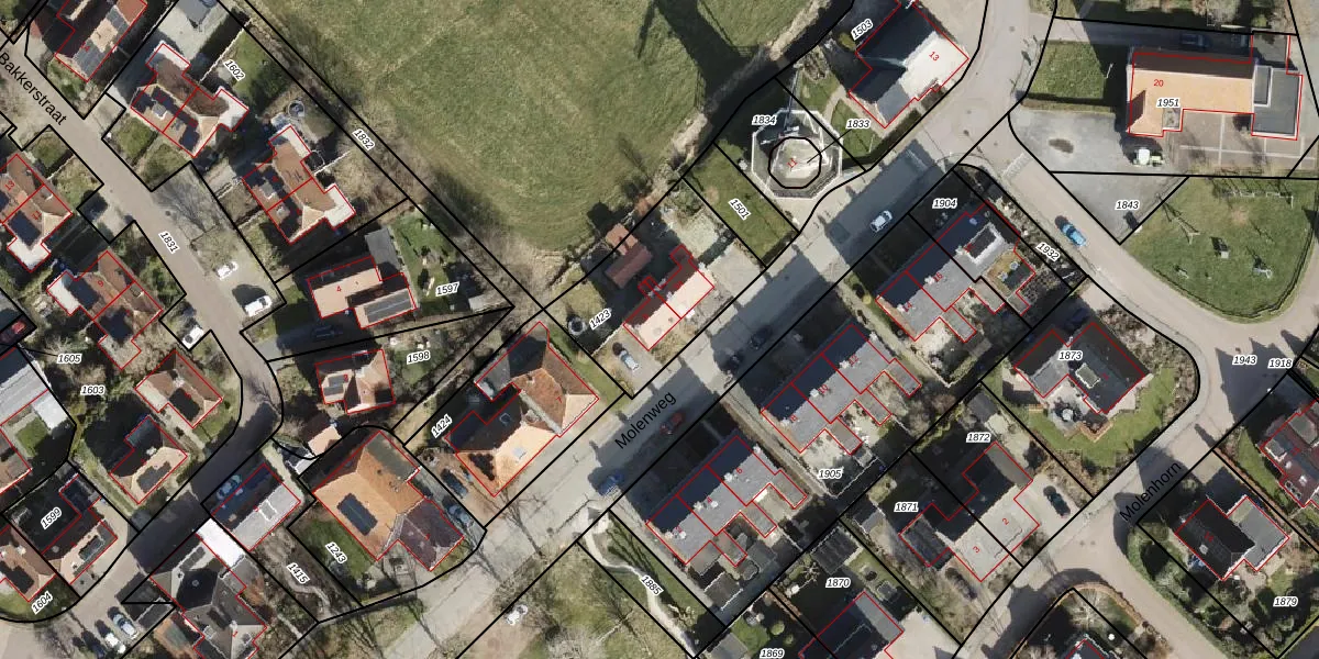 Het perceel waarop Molenweg 9 staat heeft een oppervlakte van 520 m². Dit is een groot perceel. De perceeloppervlakte wordt geregistreerd door het Kadaster. Gedetailleerde informatie over de maten van dit perceel kunt u vinden in het rapport Kadastrale kaart met maatvoering van Molenweg 9.