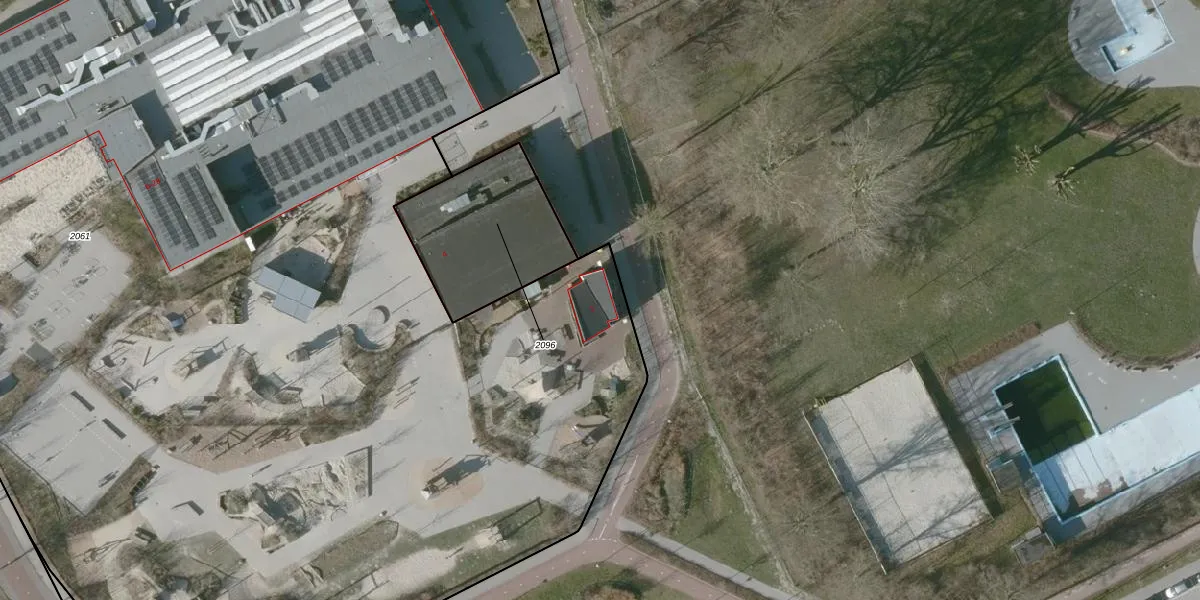 Het adres is gelegen op perceel 2061 in de sectie N en de kadastrale gemeente Tholen. De kadastrale aanduiding is aldus TLN00-N-2061. Het perceel is 1,9 ha groot. Dat is kleiner dan de gemiddelde perceeloppervlakte in Tholen, dat op 2,0 ha ligt. Het grootste perceel in de kadastrale gemeente is 32,13 km². Het kleinste perceel heeft een oppervlakte van 0 m². Er zijn 14 adressen aanwezig op het perceel. De huidige grenzen van het perceel zijn digitaal in de Basisregistratie Kadaster (BRK) geregistreerd op 28-06-2021.