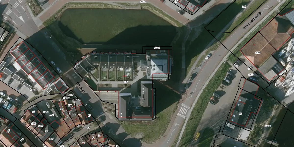 Het perceel waarop Bastion 19 staat heeft een oppervlakte van 2170 m². Dit is een zeer groot perceel. De perceeloppervlakte wordt geregistreerd door het Kadaster. Gedetailleerde informatie over de maten van dit perceel kunt u vinden in het rapport Kadastrale kaart met maatvoering van Bastion 19.