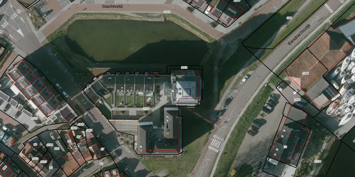 Het perceel waarop Bastion 33 staat heeft een oppervlakte van 2170 m². Dit is een zeer groot perceel. De perceeloppervlakte wordt geregistreerd door het Kadaster. Gedetailleerde informatie over de maten van dit perceel kunt u vinden in het rapport Kadastrale kaart met maatvoering van Bastion 33.