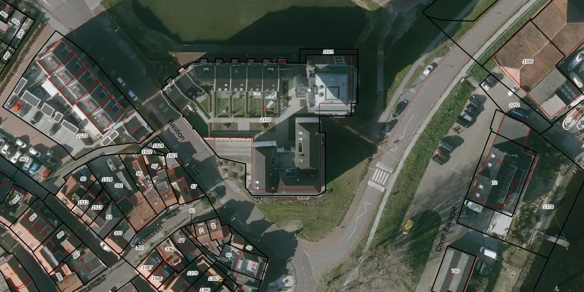 Het perceel waarop Bastion 43 staat heeft een oppervlakte van 2170 m². Dit is een zeer groot perceel. De perceeloppervlakte wordt geregistreerd door het Kadaster. Gedetailleerde informatie over de maten van dit perceel kunt u vinden in het rapport Kadastrale kaart met maatvoering van Bastion 43.