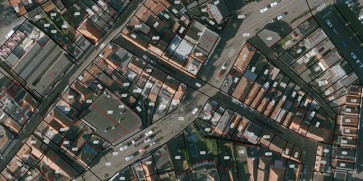 Bebouwdendam 18 is gelegen op kadastraal perceel TLN00R596. Deze kadastrale aanduiding is uniek en wordt gebruikt door het Kadaster om eigendomsrechten en andere zakelijke rechten vast te leggen. Het perceel maakt onderdeel uit van de kadastrale gemeente Tholen.