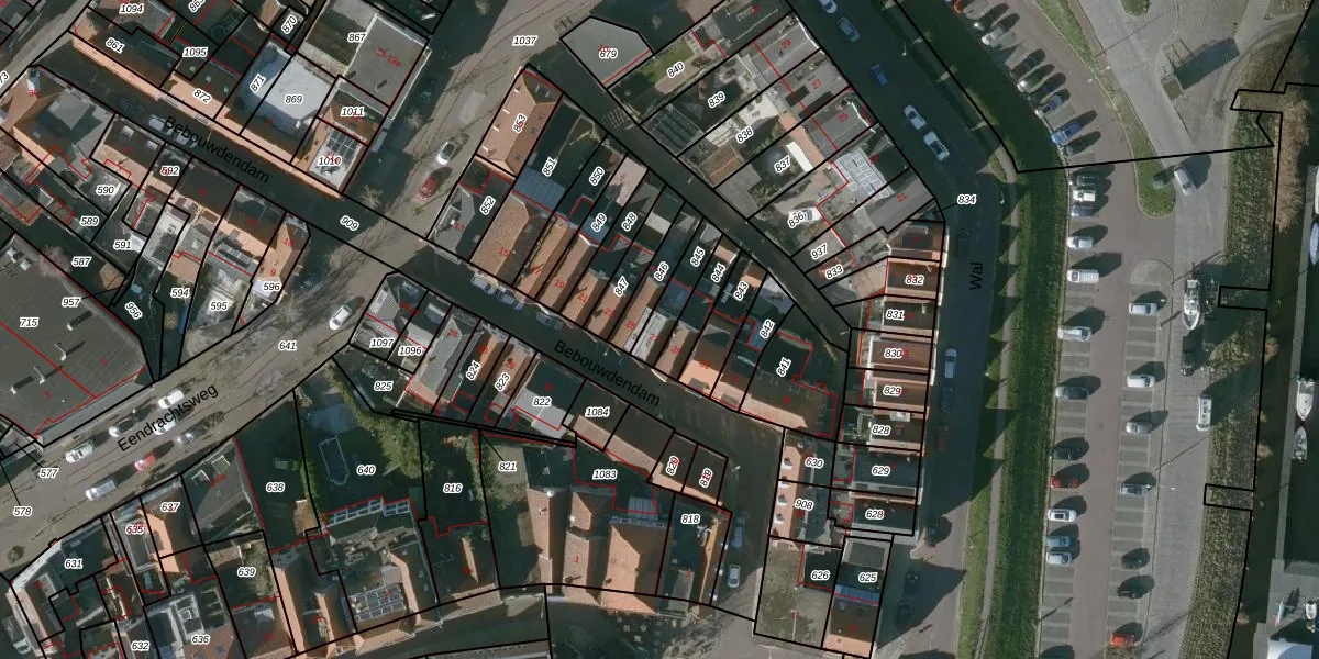 Bebouwdendam 27 is gelegen op kadastraal perceel TLN00R845. Deze kadastrale aanduiding is uniek en wordt gebruikt door het Kadaster om eigendomsrechten en andere zakelijke rechten vast te leggen. Het perceel maakt onderdeel uit van de kadastrale gemeente Tholen.