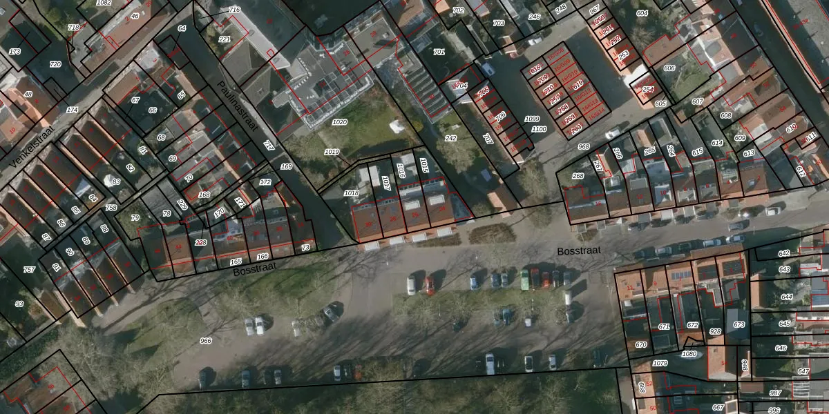 Het perceel waarop Bosstraat 26 staat heeft een oppervlakte van 114 m². Dit is een middelgroot perceel. De perceeloppervlakte wordt geregistreerd door het Kadaster. Gedetailleerde informatie over de maten van dit perceel kunt u vinden in het rapport Kadastrale kaart met maatvoering van Bosstraat 26.