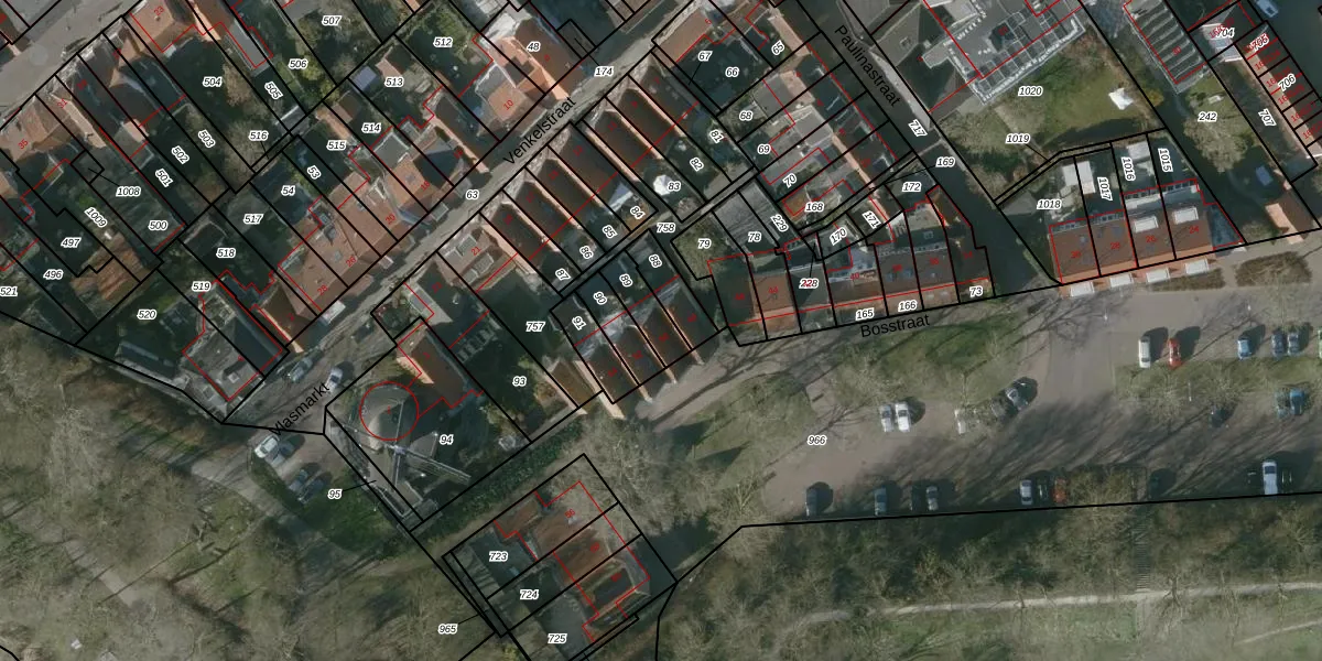 Gebruik de zoekbalk of klik op een perceel voor informatie over de adressen binnen dit perceel.