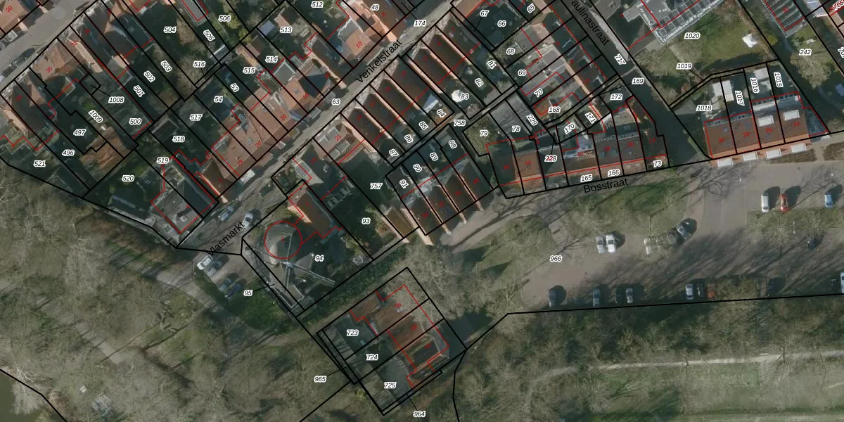 Gebruik de zoekbalk of klik op een perceel voor informatie over de adressen binnen dit perceel.