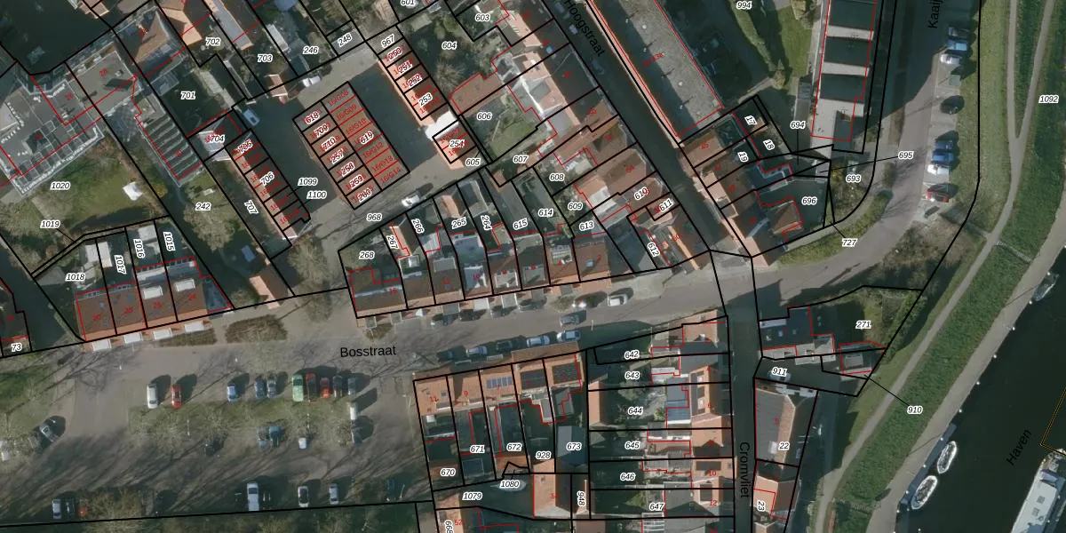 Gebruik de zoekbalk of klik op een perceel voor informatie over de adressen binnen dit perceel.