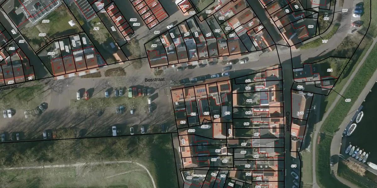Bosstraat 9 is gelegen op kadastraal perceel TLN00R671. Deze kadastrale aanduiding is uniek en wordt gebruikt door het Kadaster om eigendomsrechten en andere zakelijke rechten vast te leggen. Het perceel maakt onderdeel uit van de kadastrale gemeente Tholen.
