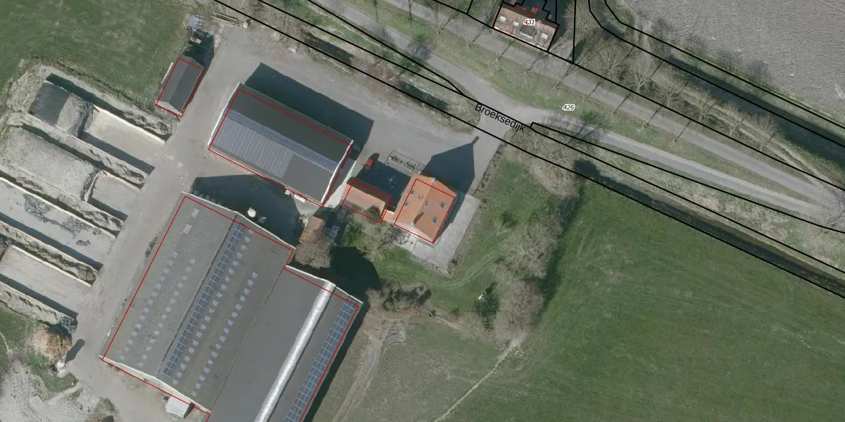 Het perceel waarop Broeksedijk 1 staat heeft een oppervlakte van 21,4 ha. Dit is een zeer groot perceel. De perceeloppervlakte wordt geregistreerd door het Kadaster. Gedetailleerde informatie over de maten van dit perceel kunt u vinden in het rapport Kadastrale kaart met maatvoering van Broeksedijk 1.