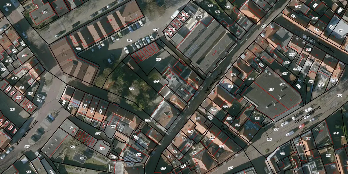 Het perceel waarop Dalemsestraat 19-d staat heeft een oppervlakte van 596 m². Dit is een groot perceel. De perceeloppervlakte wordt geregistreerd door het Kadaster. Gedetailleerde informatie over de maten van dit perceel kunt u vinden in het rapport Kadastrale kaart met maatvoering van Dalemsestraat 19-d.