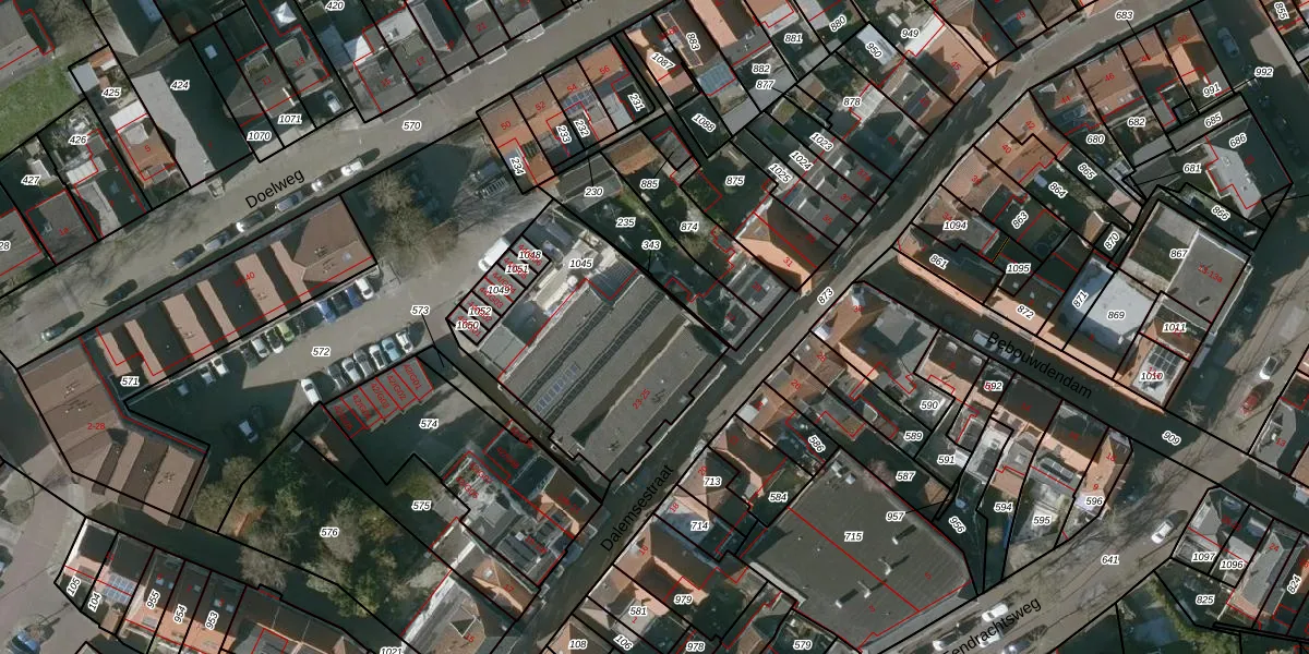 Het perceel waarop Dalemsestraat 23-c staat heeft een oppervlakte van 875 m². Dit is een groot perceel. De perceeloppervlakte wordt geregistreerd door het Kadaster. Gedetailleerde informatie over de maten van dit perceel kunt u vinden in het rapport Kadastrale kaart met maatvoering van Dalemsestraat 23-c.