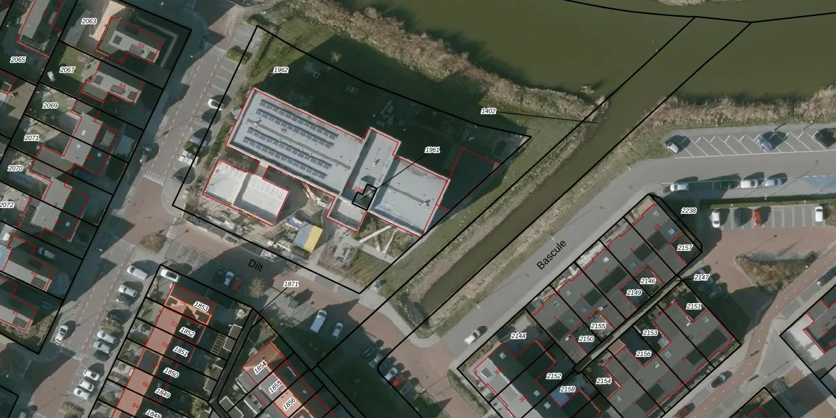 Het adres is gelegen op perceel 1962 in de sectie O en de kadastrale gemeente Tholen. De kadastrale aanduiding is aldus TLN00-O-1962. Het perceel is kleiner dan gemiddeld in Tholen. Het perceel is 2798 m² groot, terwijl het gemiddelde ligt op 2,0 ha. Het kleinste perceel in de kadastrale gemeente is 0 m² groot. De grootste perceeloppervlakte is 32,13 km². Op het perceel liggen in totaal 42 adressen. De laatste wijziging in het de Basisregistratie Kadaster (BRK) was op 02-12-2016.