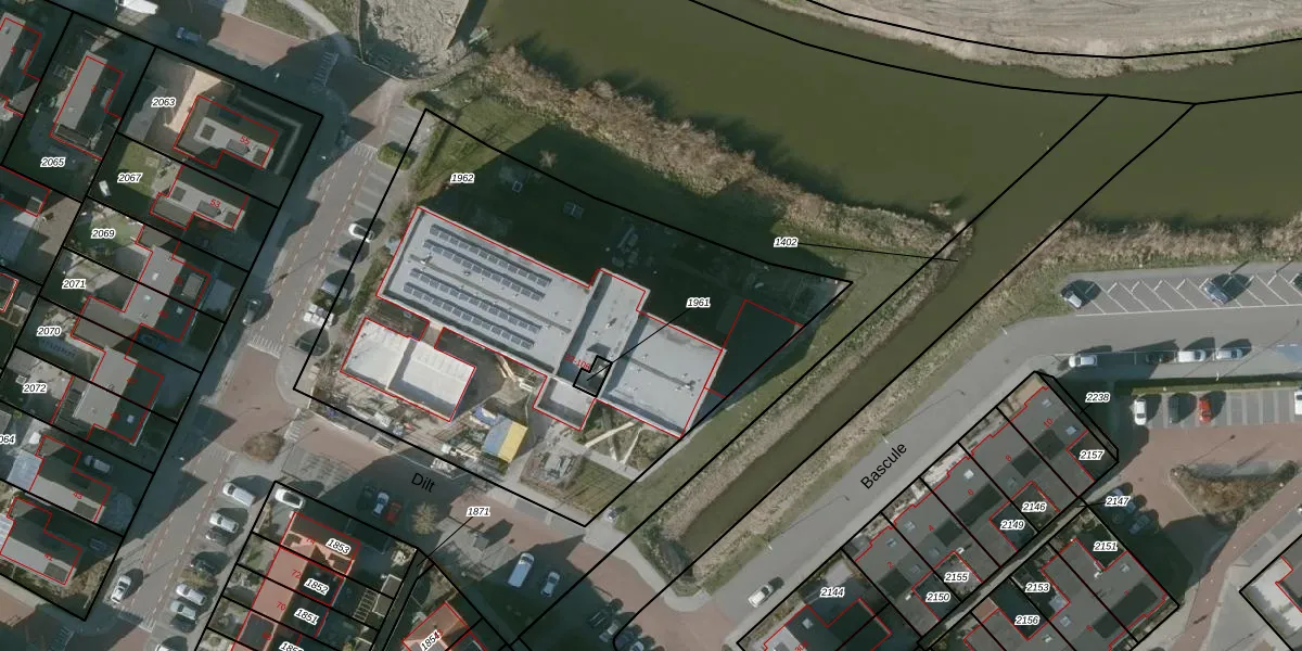 Het adres is gelegen op perceel 1962 in de sectie O en de kadastrale gemeente Tholen. De kadastrale aanduiding is aldus TLN00-O-1962. Het perceel is kleiner dan gemiddeld in Tholen. Het perceel is 2798 m² groot, terwijl het gemiddelde ligt op 2,0 ha. Het grootste perceel in de kadastrale gemeente is 32,13 km². Het kleinste perceel heeft een oppervlakte van 0 m². Er zijn 42 adressen aanwezig op het perceel. De laatste wijziging in het de Basisregistratie Kadaster (BRK) was op 02-12-2016.