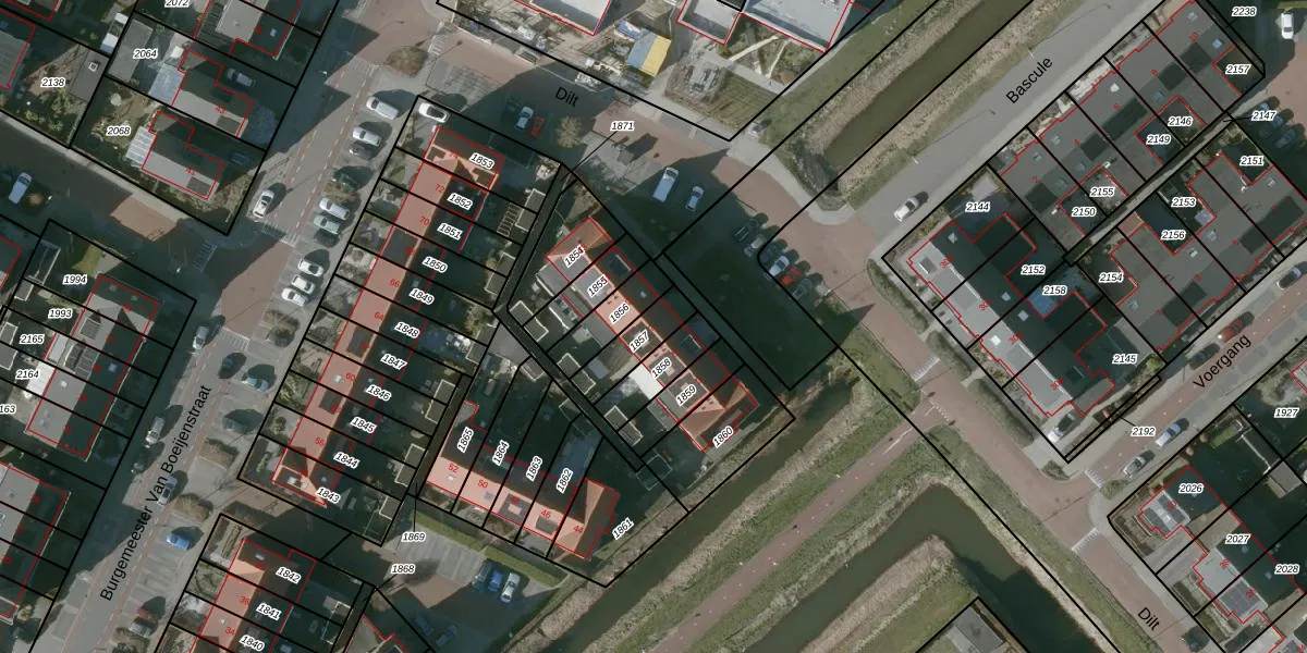 Gebruik de zoekbalk of klik op een perceel voor informatie over de adressen binnen dit perceel.