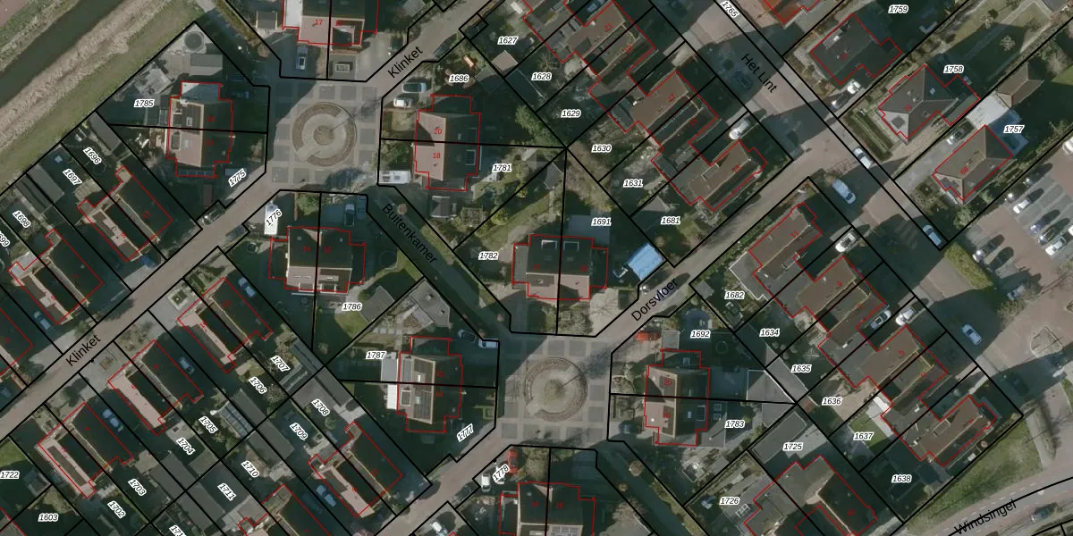 Het perceel waarop Dorsvloer 17 staat heeft een oppervlakte van 396 m². Dit is een groot perceel. De perceeloppervlakte wordt geregistreerd door het Kadaster. Gedetailleerde informatie over de maten van dit perceel kunt u vinden in het rapport Kadastrale kaart met maatvoering van Dorsvloer 17.