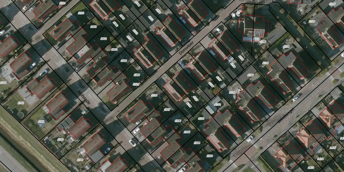 Het perceel waarop Dorsvloer 2 staat heeft een oppervlakte van 262 m². Dit is een middelgroot perceel. De perceeloppervlakte wordt geregistreerd door het Kadaster. Gedetailleerde informatie over de maten van dit perceel kunt u vinden in het rapport Kadastrale kaart met maatvoering van Dorsvloer 2.