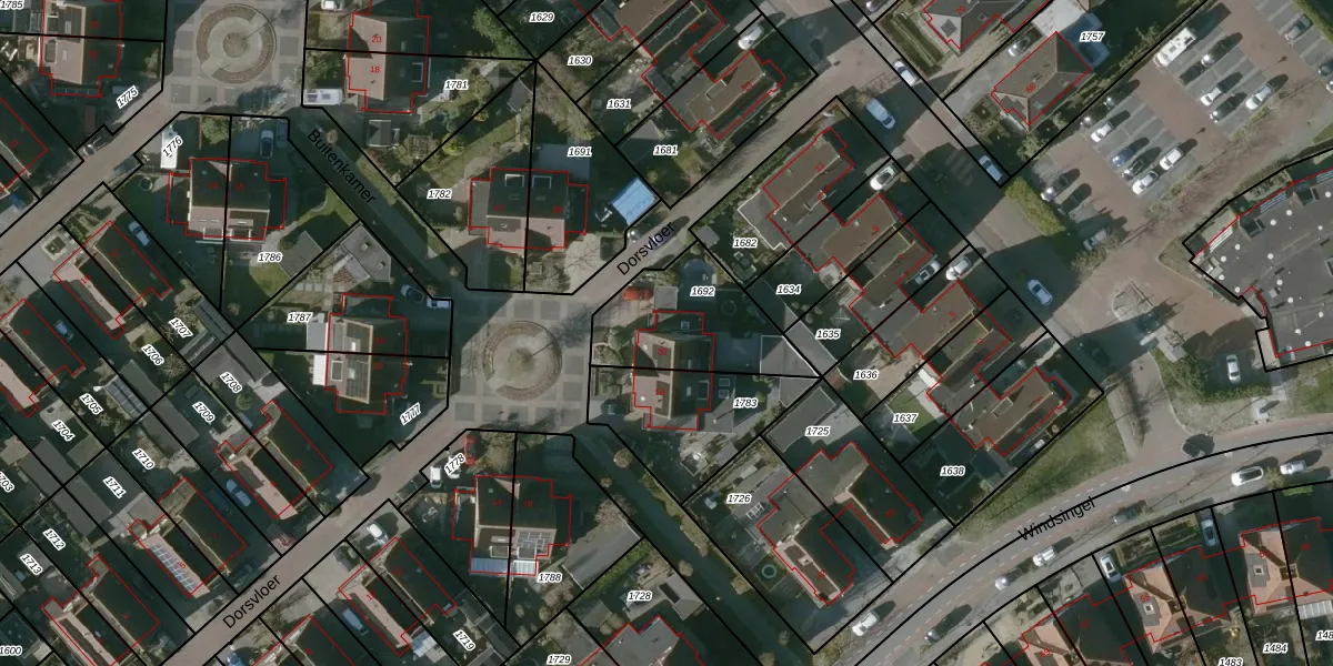 Het perceel waarop Dorsvloer 20 staat heeft een oppervlakte van 406 m². Dit is een groot perceel. De perceeloppervlakte wordt geregistreerd door het Kadaster. Gedetailleerde informatie over de maten van dit perceel kunt u vinden in het rapport Kadastrale kaart met maatvoering van Dorsvloer 20.