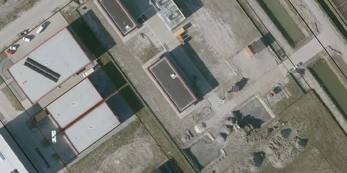 Einsteinweg 1 is gelegen op kadastraal perceel TLN00S687. Deze kadastrale aanduiding is uniek en wordt gebruikt door het Kadaster om eigendomsrechten en andere zakelijke rechten vast te leggen. Het perceel maakt onderdeel uit van de kadastrale gemeente Tholen.